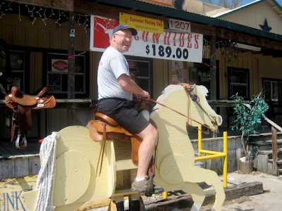 We stopped by a leather shop and checked out the really nice and expensive saddles. Chuck went horseback riding.